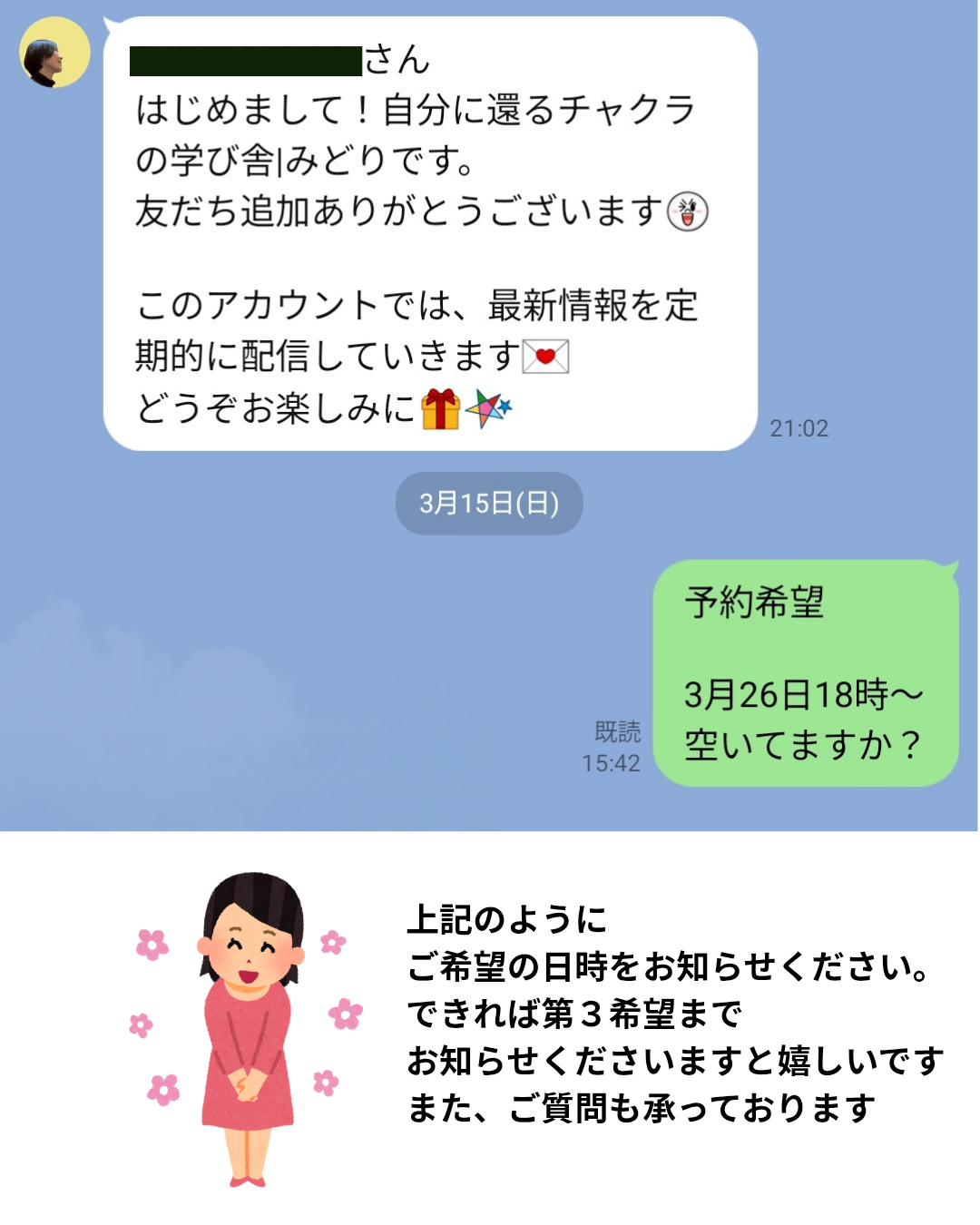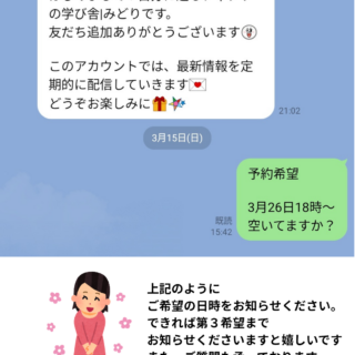 PCの場合QRコードが表示されますので、スマホで読み取って友達追加した後、ご予約、お問合せお願いします。